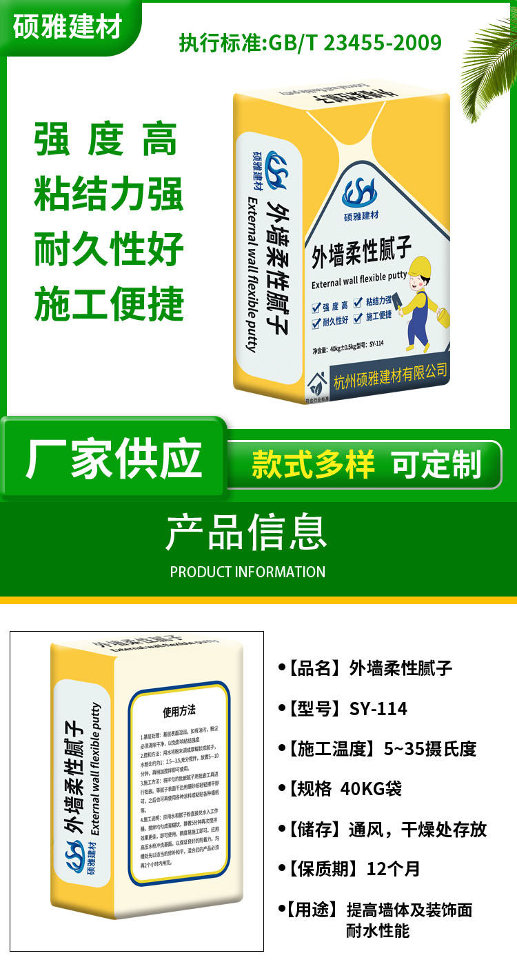 首页 >> 产品中心 >>腻子类 >> 外墙柔性腻子SY-114